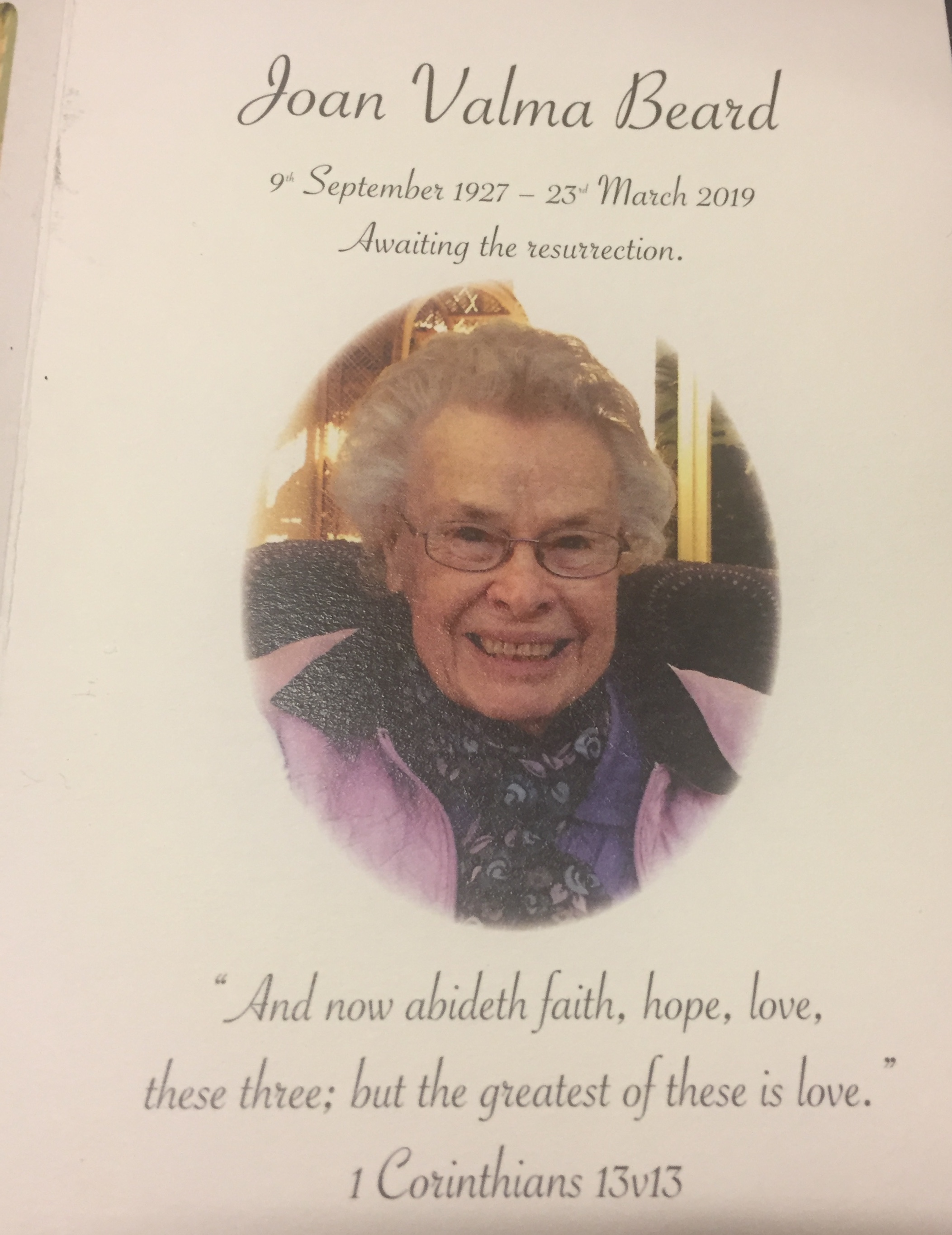 – Thursday- Joan Beard’s funeral
