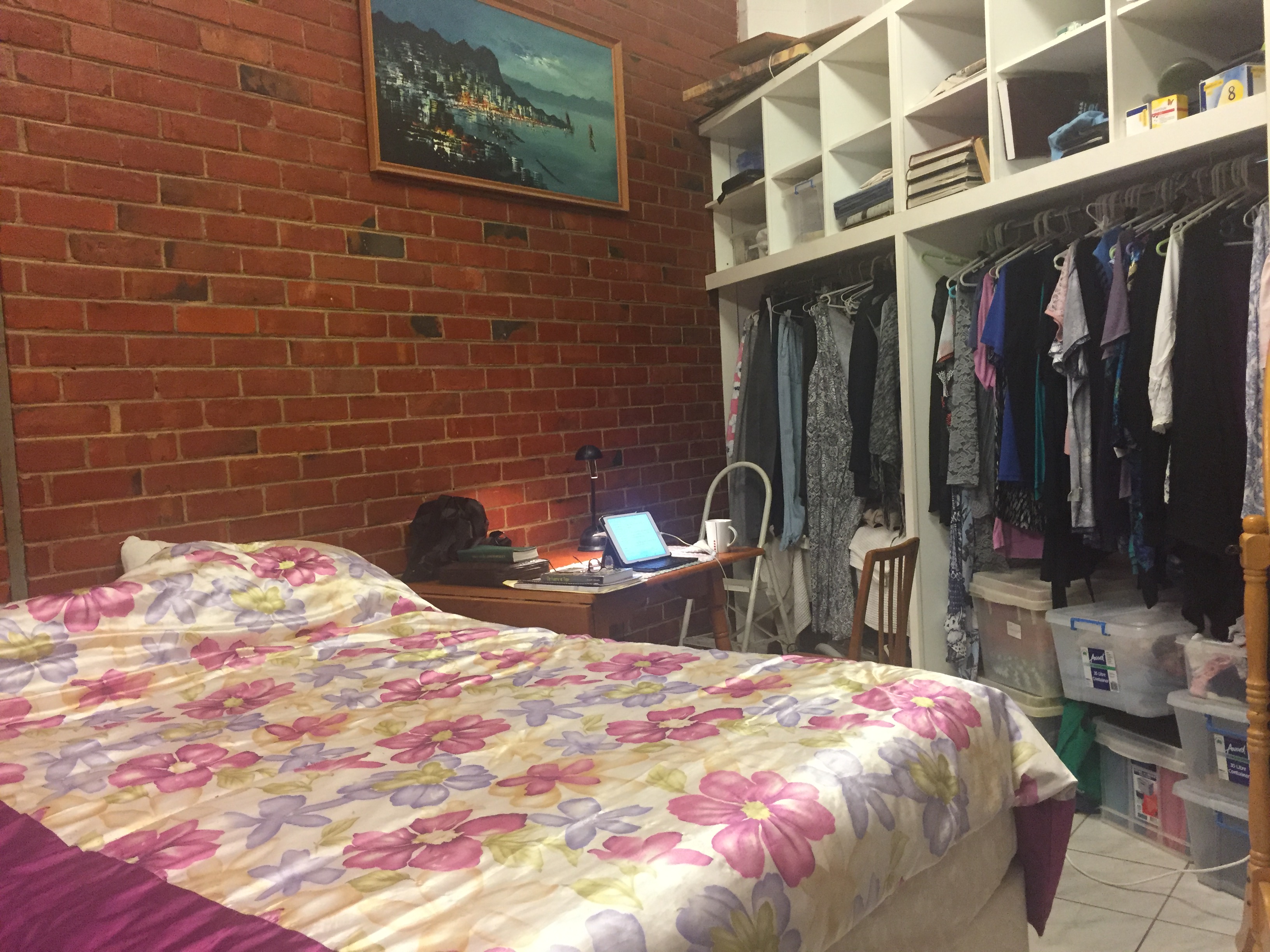 I live in a very small space with a bed living room, a small kitchen and bathroom and a verandah.
